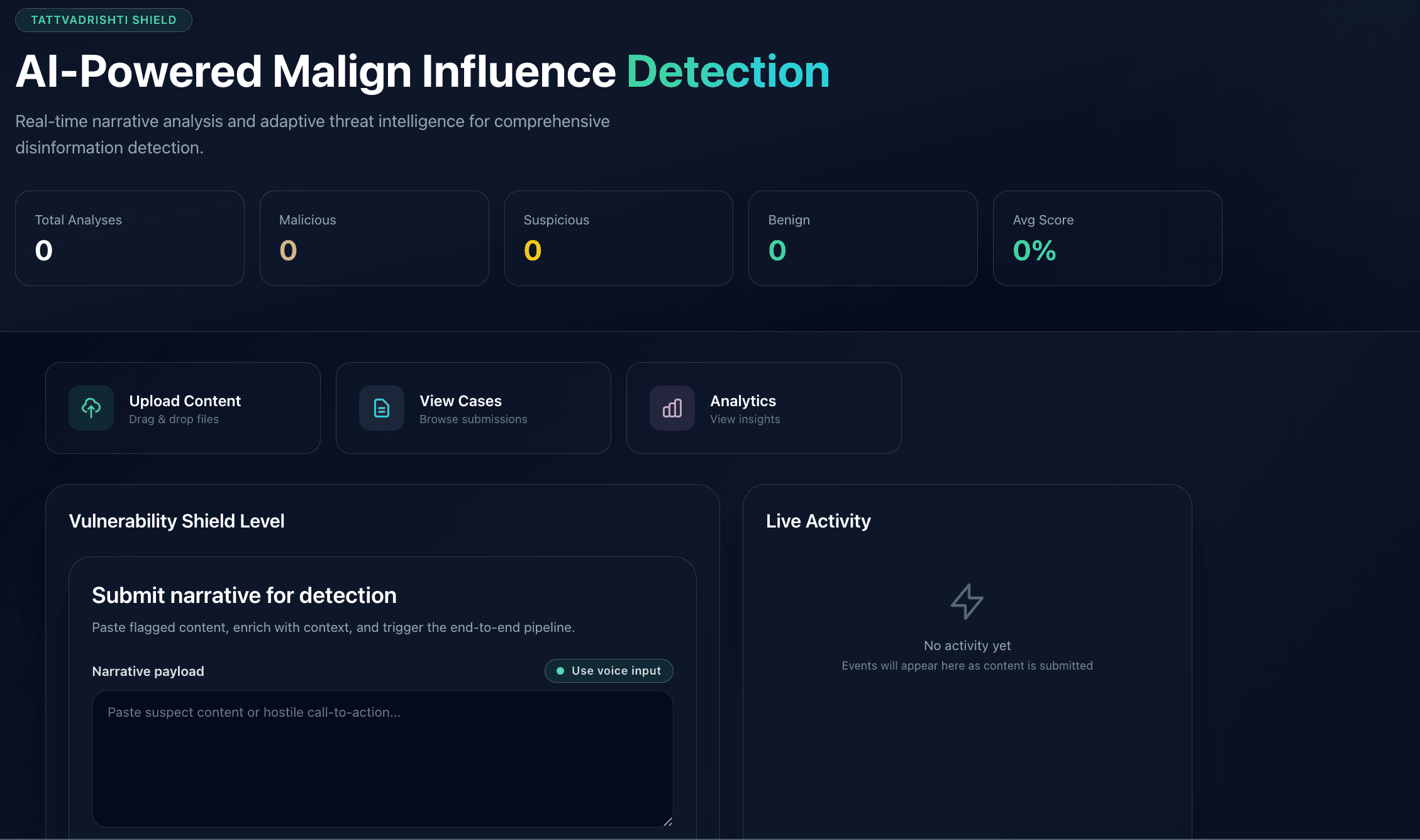 A transformer-based disinformation detection platform focused on identifying malign narratives in real time. Features scalable FastAPI inference pipelines and an interactive Next.js dashboard for structured analysis and reporting.